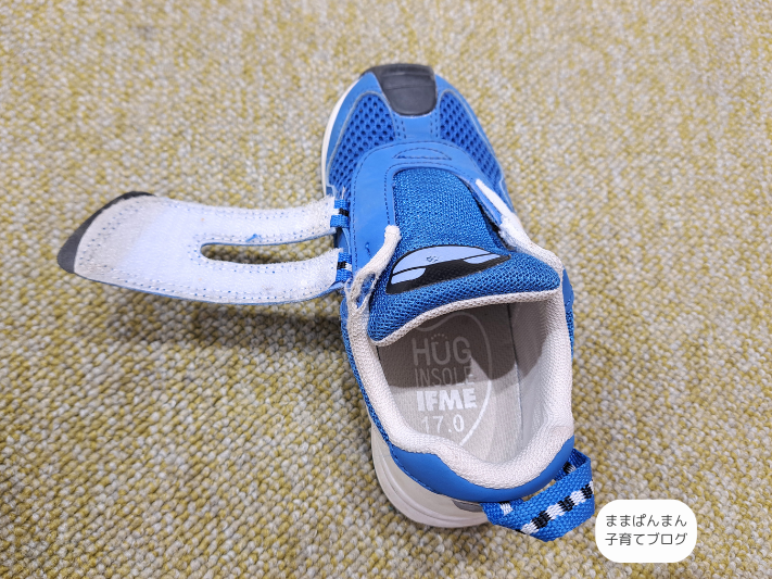 イフミーのこの靴はマジックテープの幅が広いので、3歳の子でも止めやすく、足をしっかり固定できます。
