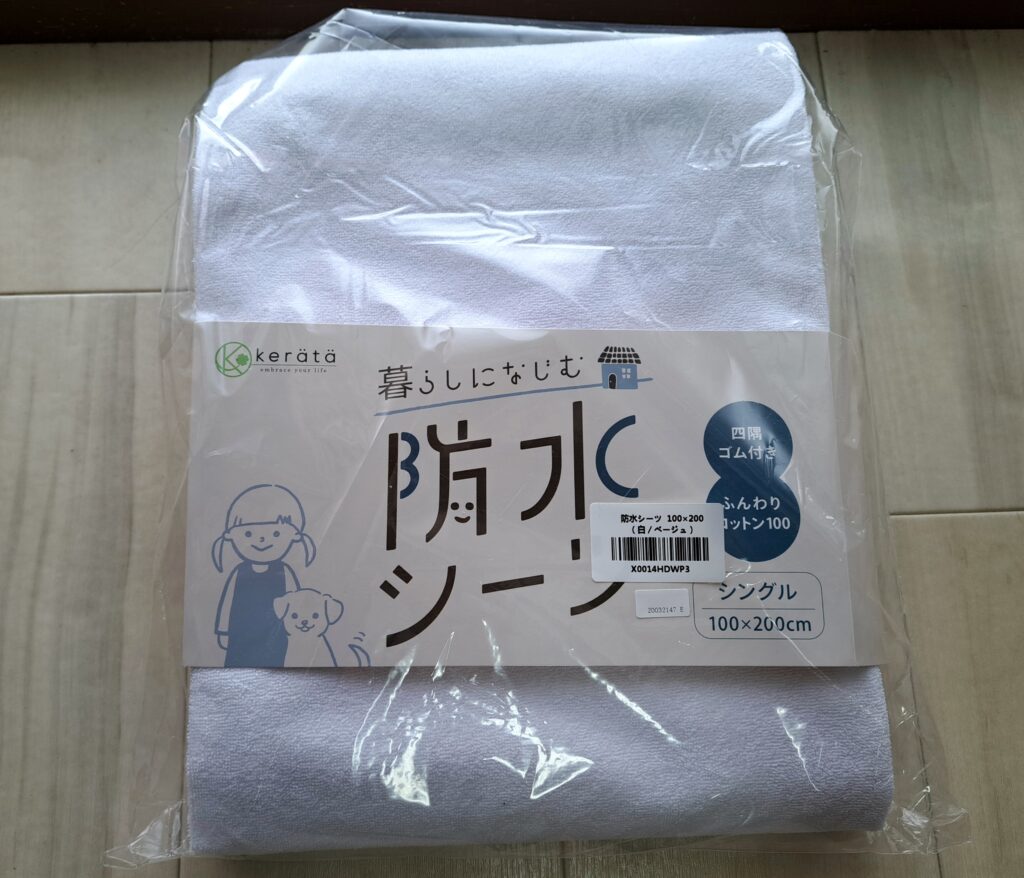 そして現在、子どもの夜のおねしょが心配な時期に入り、防水シーツを買いなおすことに!